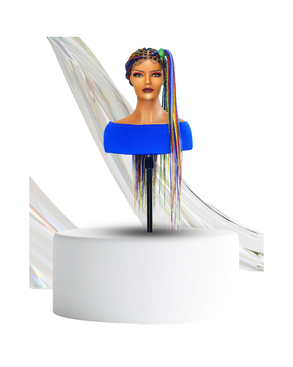 Designed with a convenient closure, the “Rainbow” braided wig ensures a secure and snug fit, giving you the confidence to rock your look all day long without any worries. The high-quality synthetic fibers used in its construction are both durable and realistic, providing a natural look and feel that is easy to maintain and style.